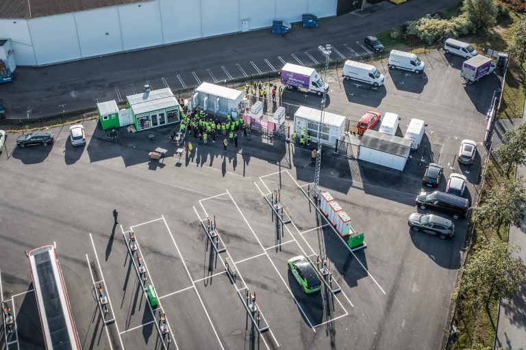 I centrala Malmö fick vi uppdraget att, tillsammans med Scania, hjälpa Falkenklev Logistik att uppföra Sveriges största ladd- och batteripark för lastbilar. Anläggningen består av en 2 MW laddpark, en 2 MWh batteripark och en 1 MW solpark som förser laddparken med el. Projektet delfinansieras av Naturvårdsverket inom ramen för Klimatklivet och med Scania som samarbetspart.